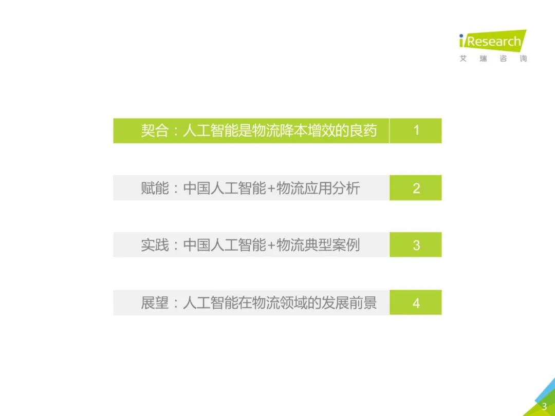 报告对“人工智能+物流”的研究范围主要集中在物流活动中的运输、仓储、配送及客服四个环节,分析研究人工智能技术及产品在上述物流作业流程中的应用情况及效果。
